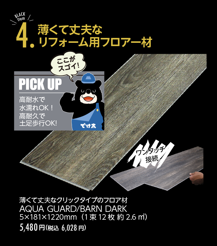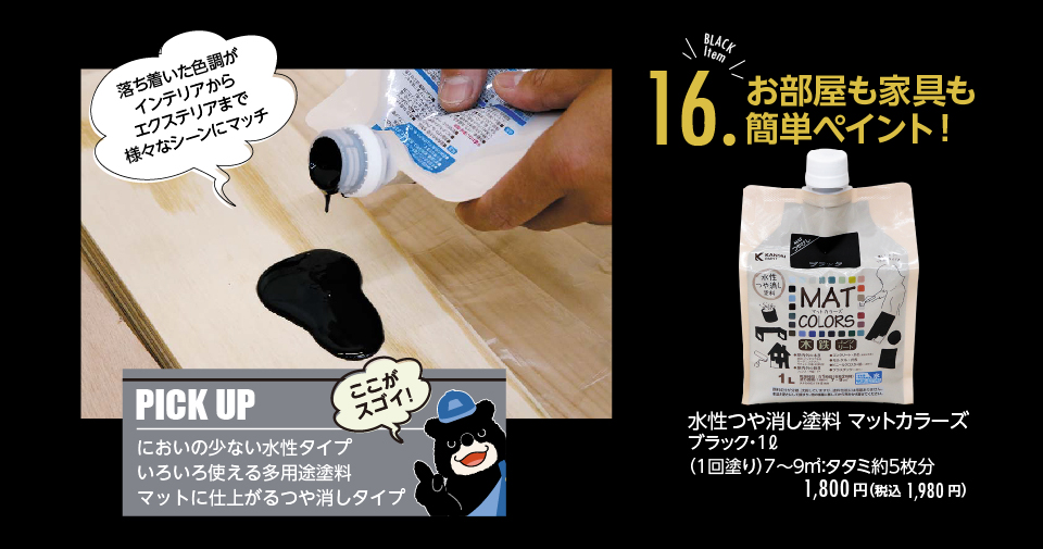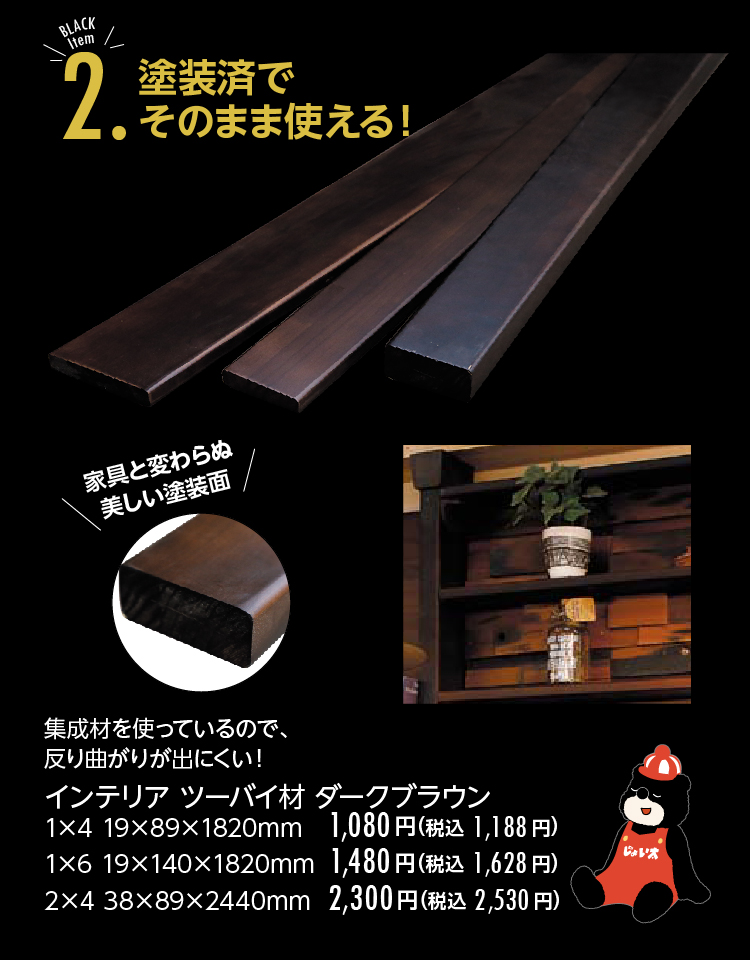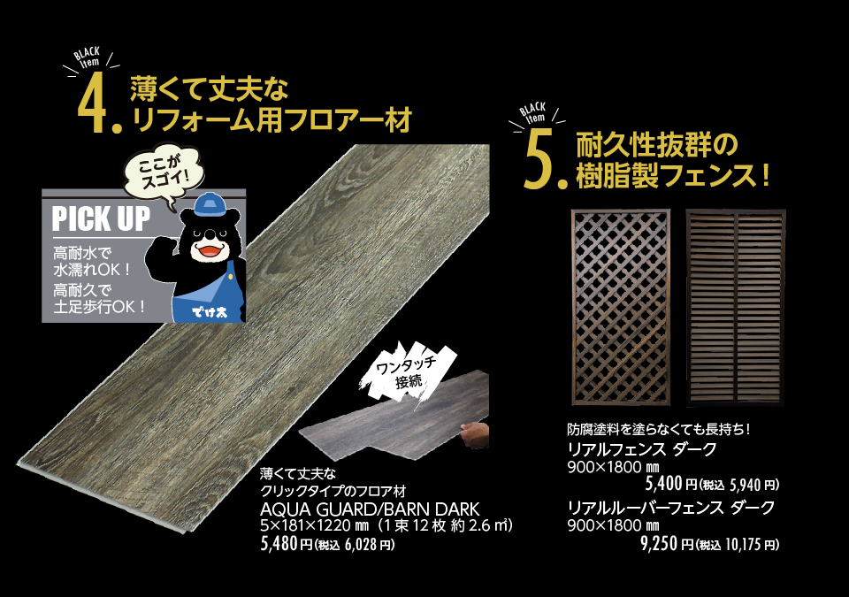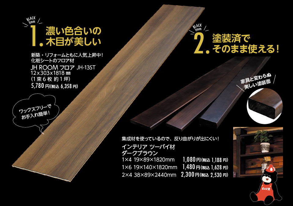 ジョイフル本田こだわりの資材からダークカラーをピックアップ。バイヤーこだわりの質感や機能にも注目。