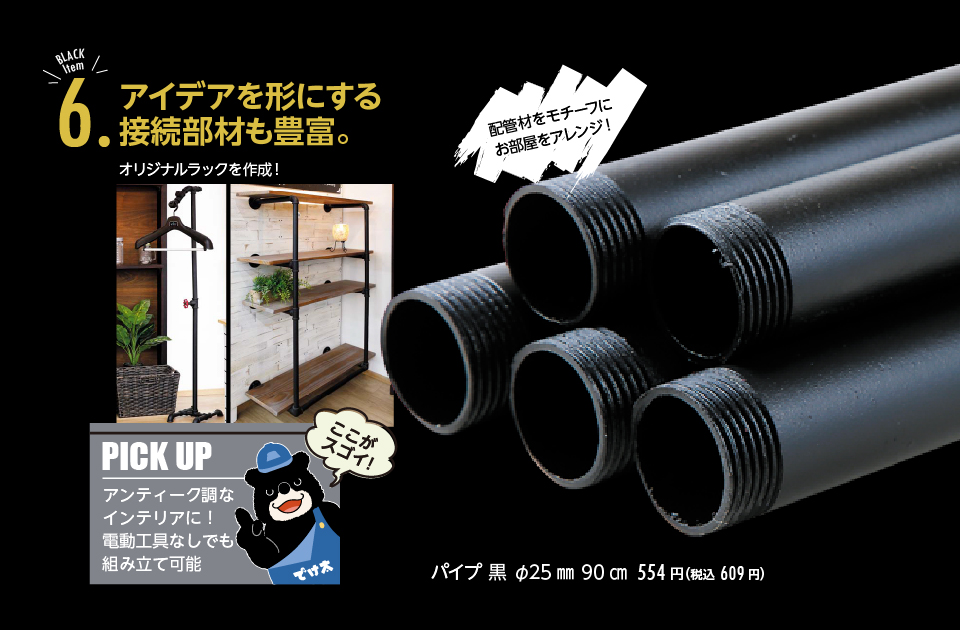 自作の家具、棚づくりにかかせない部材。自分好みの空間づくりへおすすめの”黒”をご紹介。