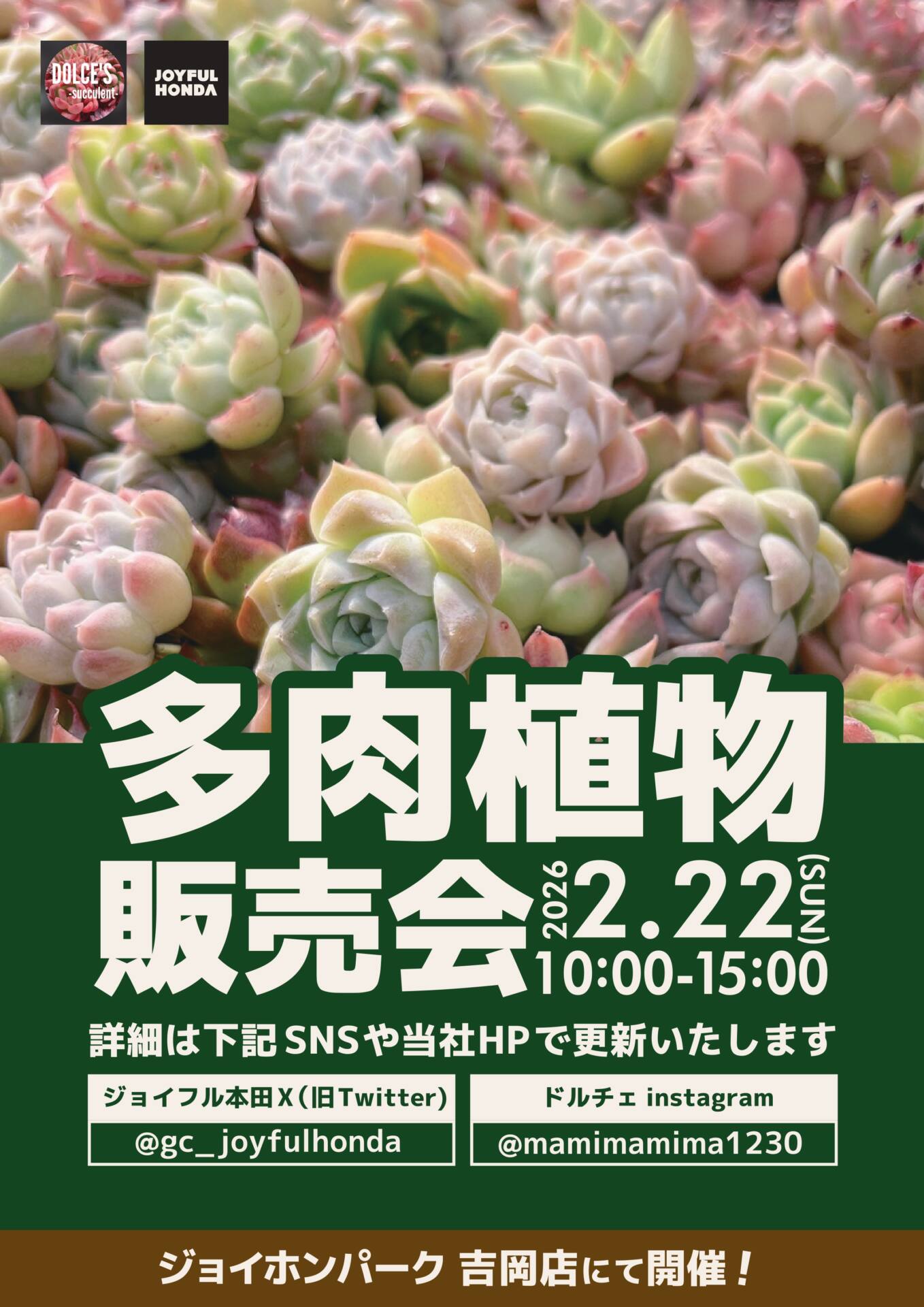 毎年大好評の「DOLCE’S」の多肉販売会です! 今しか出会えないサプライズも? ぜひ、ご来店して下さい。