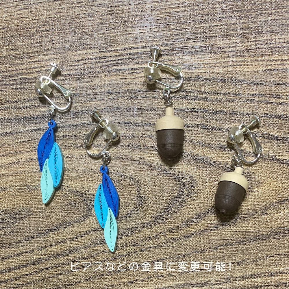 イヤリングは、ピアスやストラップなどの金具にも変更可能です!