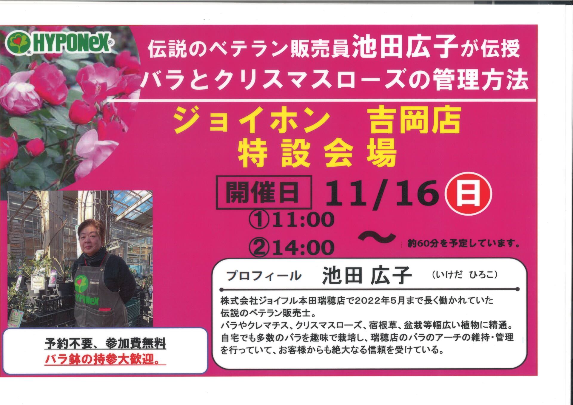 伝説の販売員「池田広子氏」によるバラ、クリスマスローズの管理講習会