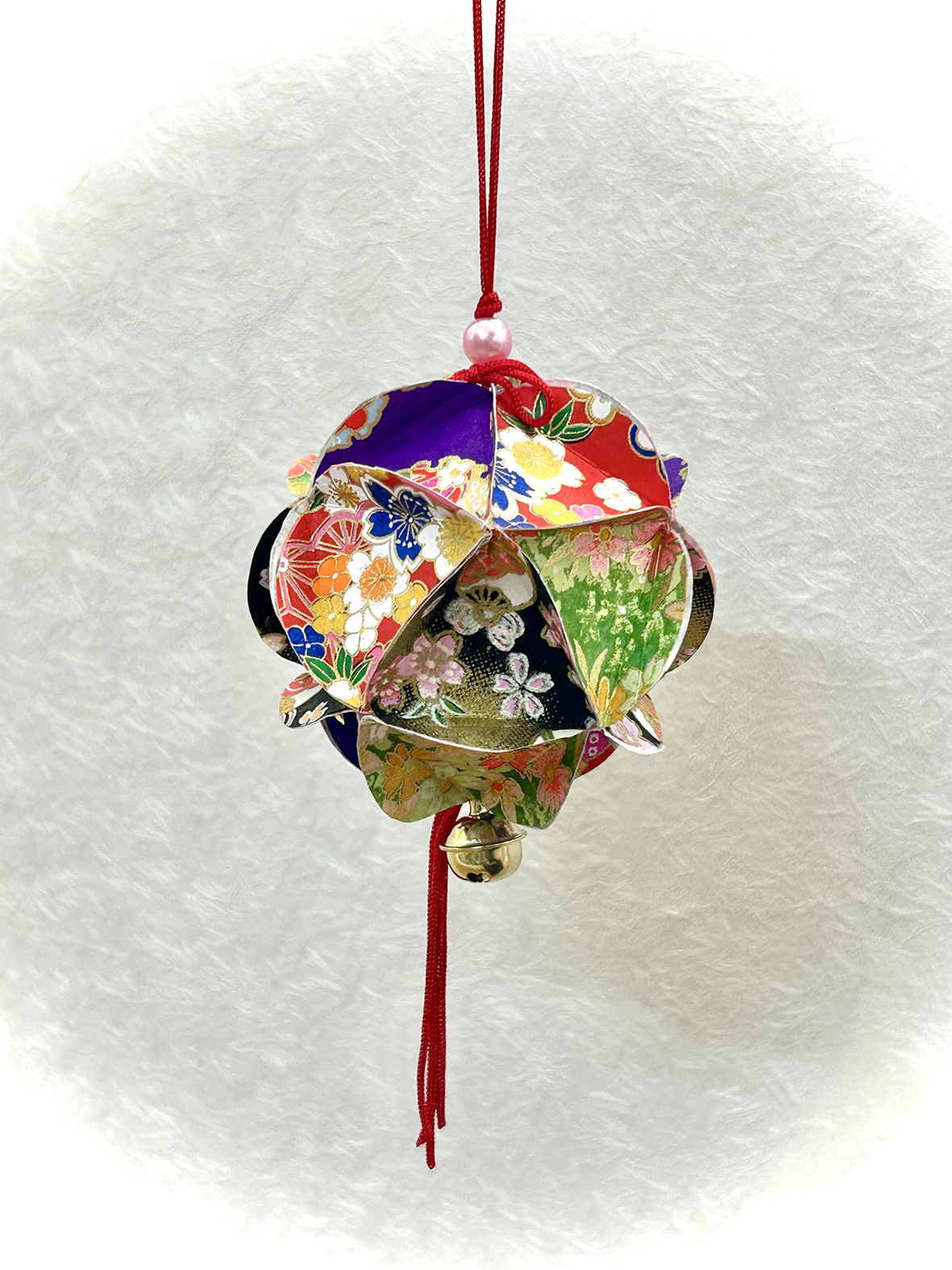 丸く切った友禅紙を貼り合わせて、かわいいくす玉を作ります。