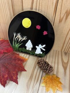 プレートをベースに樹脂粘土でかわいいウサギがお月見をしている情景を製作します。