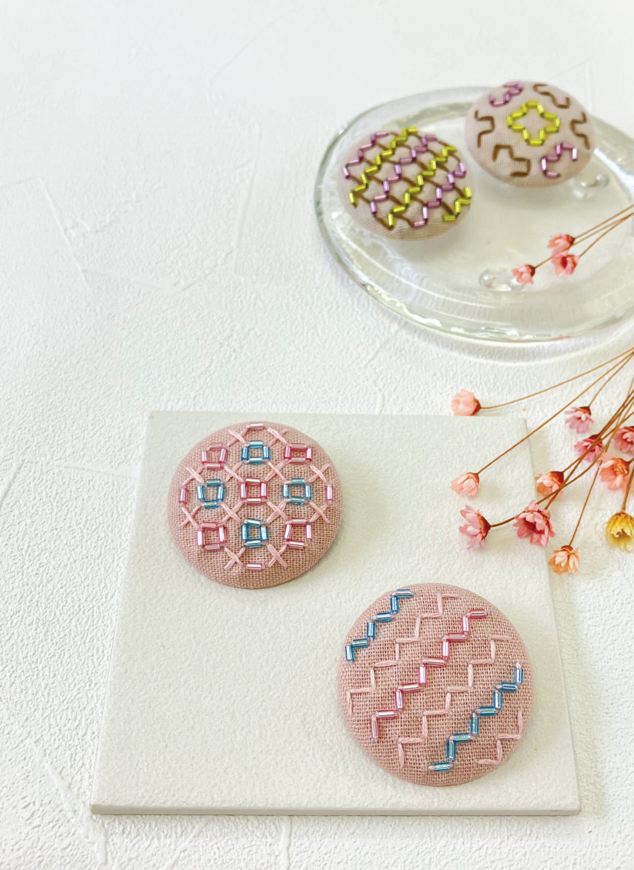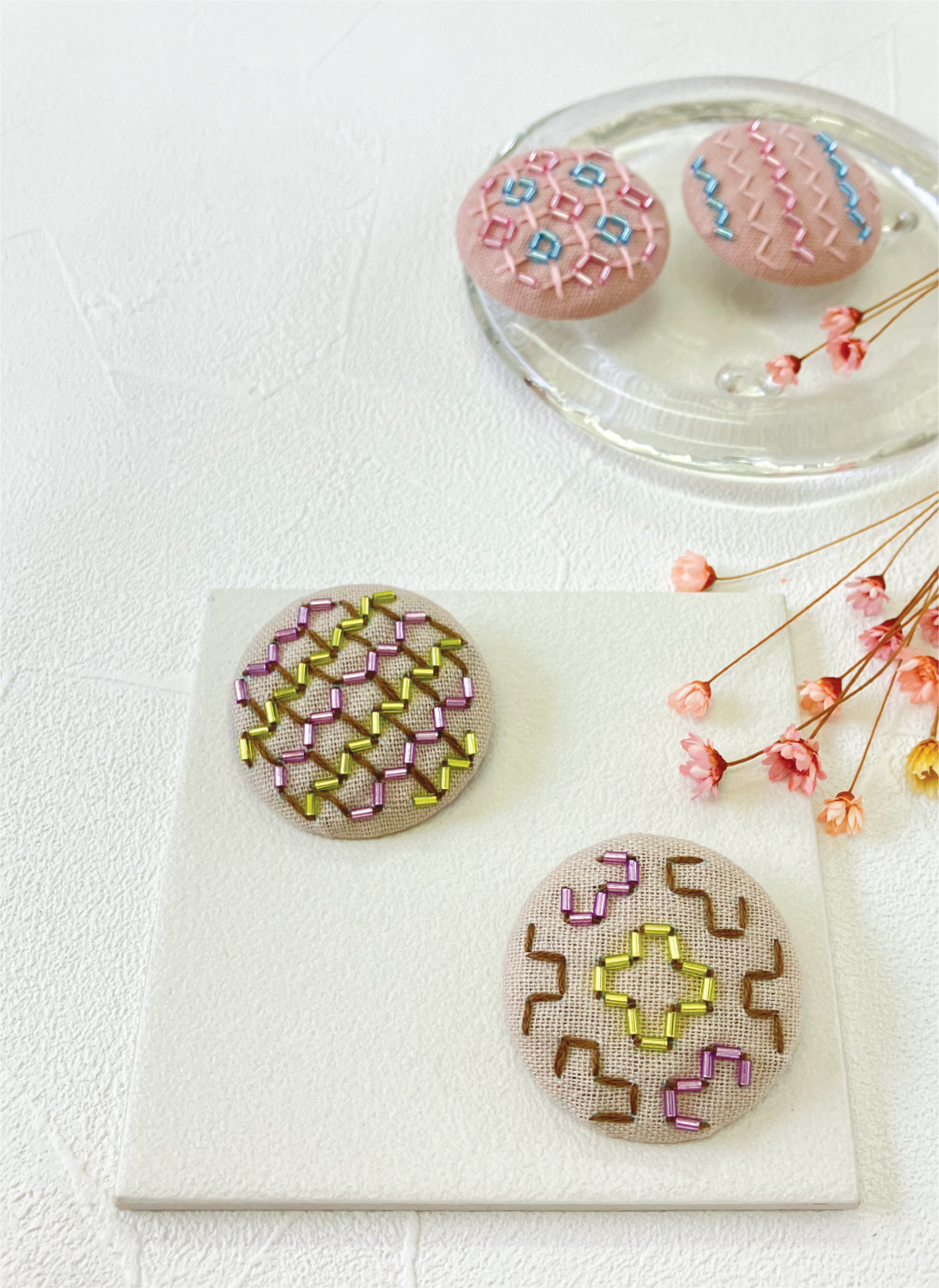 選ばれた色のブローチ2個分をご用意しますので、ワークショップ後にご自宅で1点お作りいただけます。