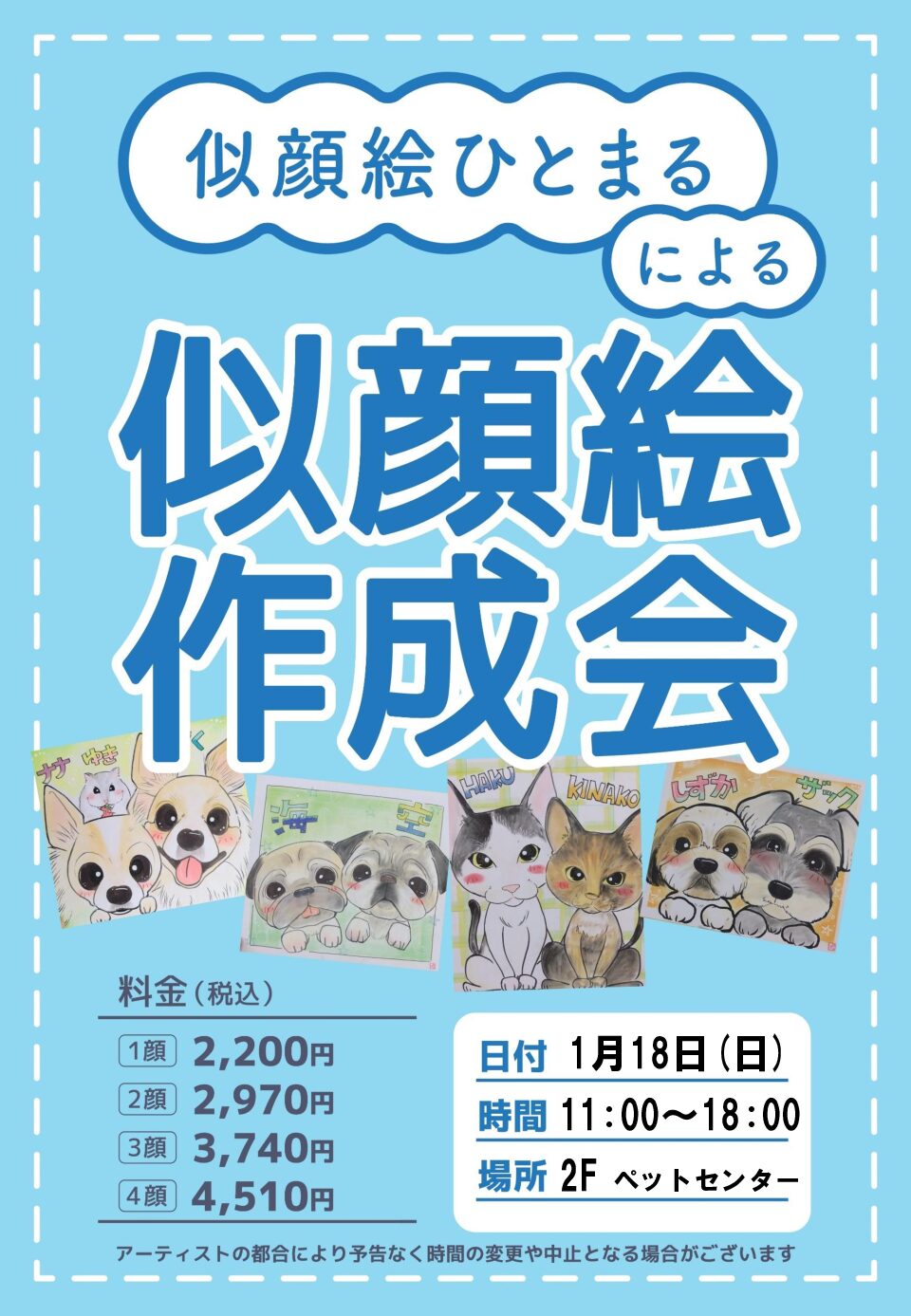 似顔絵師による似顔絵作成会です。
