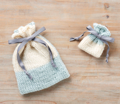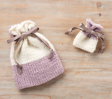 指でかける作り目、表編み、裏編みといった基本的な技法を学びながら、かわいいリボン巾着を