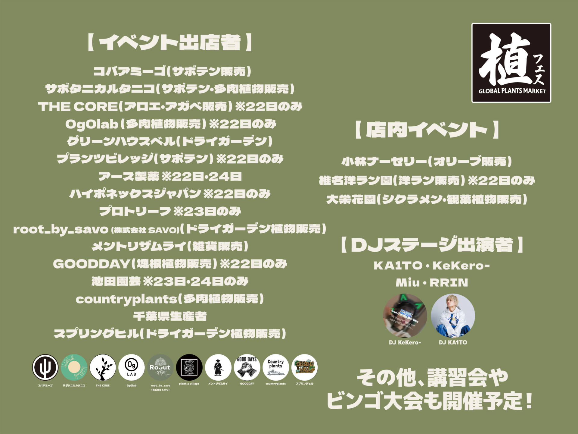今年初夏にご好評いただいた「JOYFUL FESTIVAL」の第2弾を開催!わんちゃんやねこちゃんのためのグッズ販売をはじめ、魚や動物とのふれあいも楽しめる「ペットファンLIFE」。サボテンから多肉植物まで生産者さんから直接ご購入できる「植フェス」お子さまも大人も楽しめるイベントとなっておりますのでぜひこの機会に!