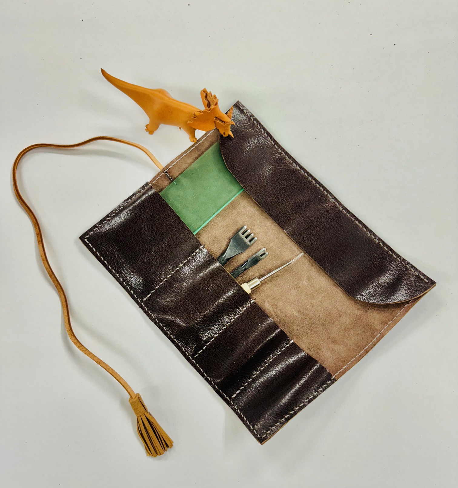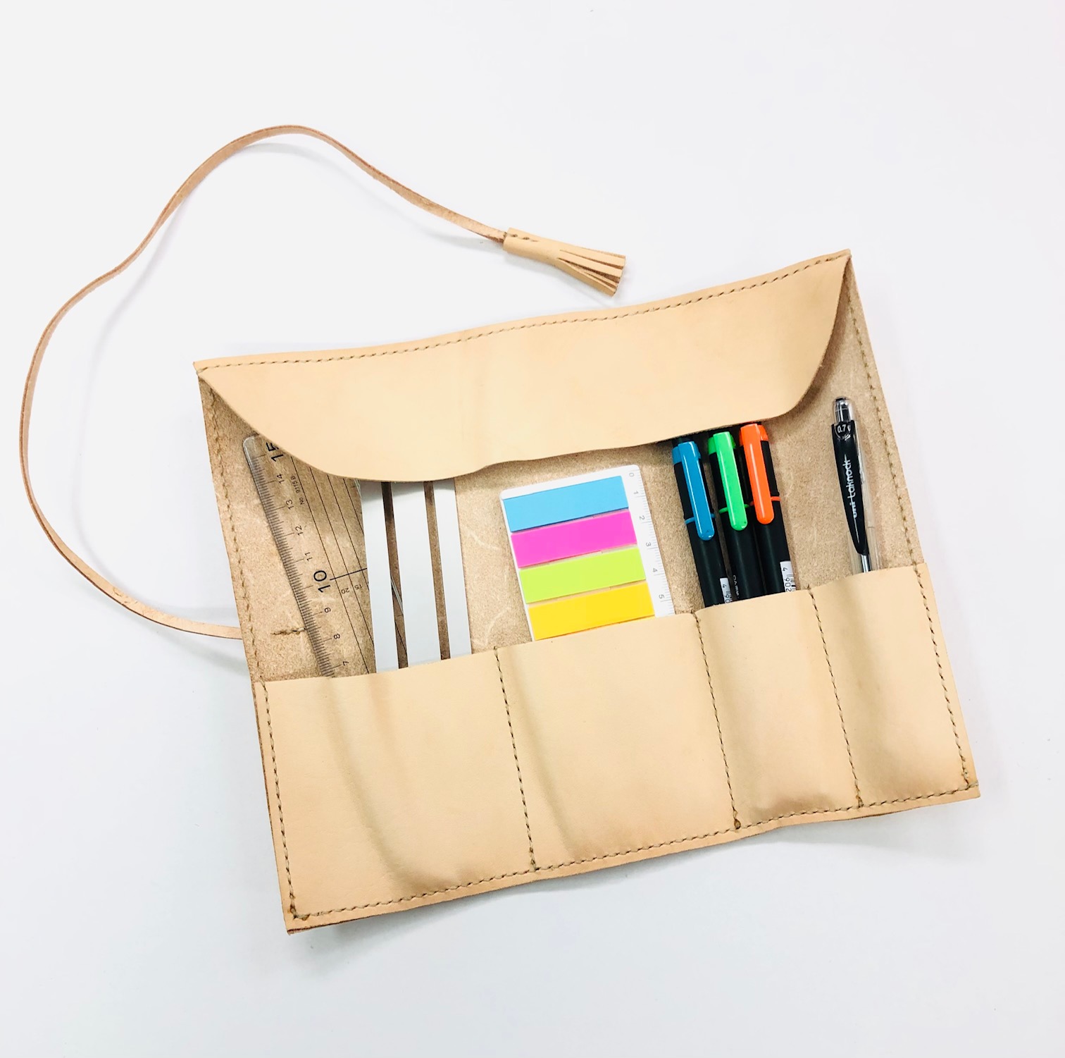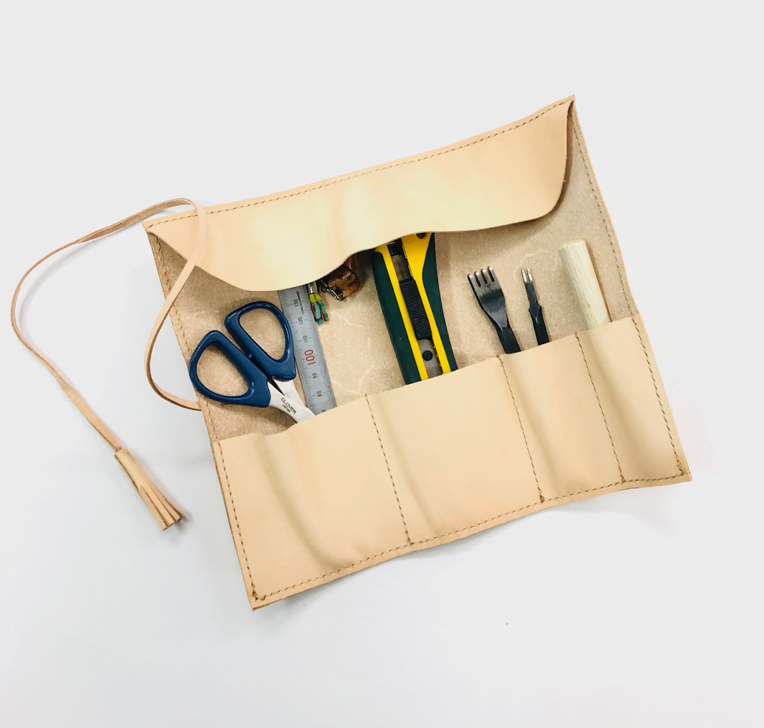 工具やコスメケースにピッタリのクルクル巻けるケースが作れる体験です。