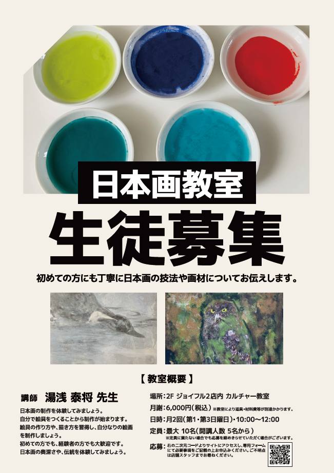 透明水彩絵具のような感覚で混色や重ね塗りも可能です。手軽に日本画を体験してみましょう!