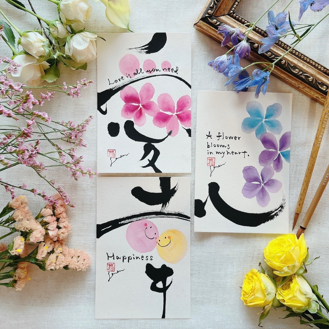 宗形真奈美先生のアドバイスを受けながら、花咲く書道🄬の素敵なデザインの作品を書いてみませんか。2作品完成いただけます。