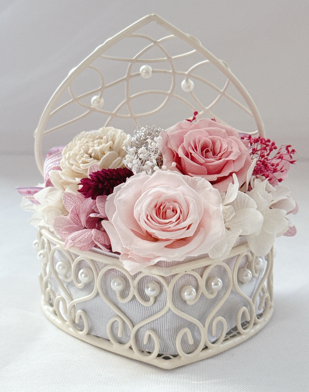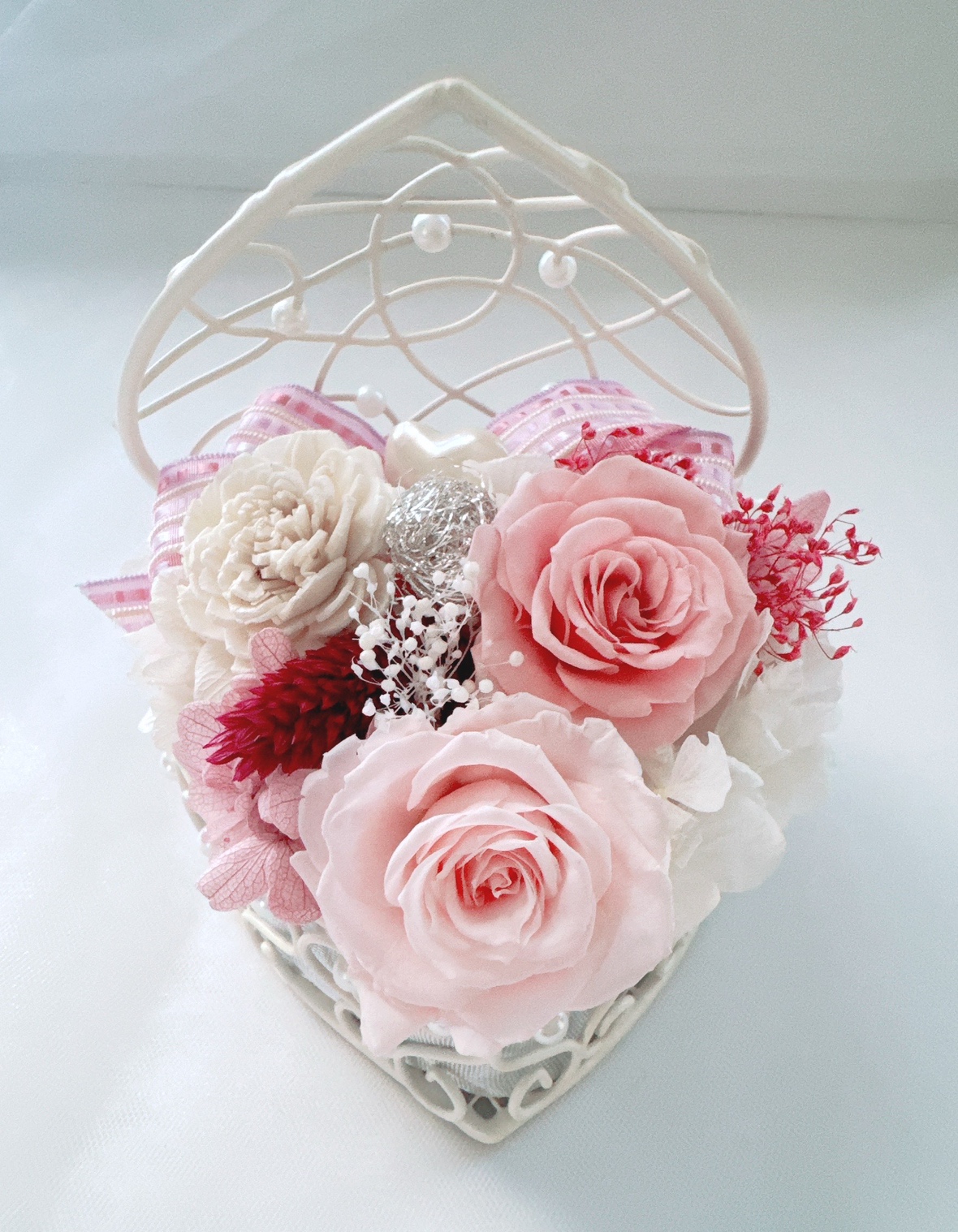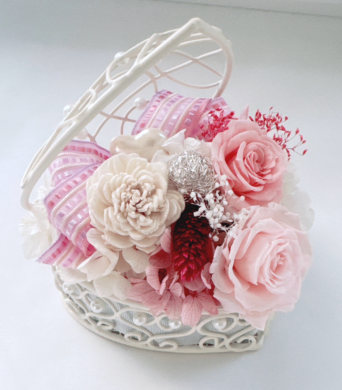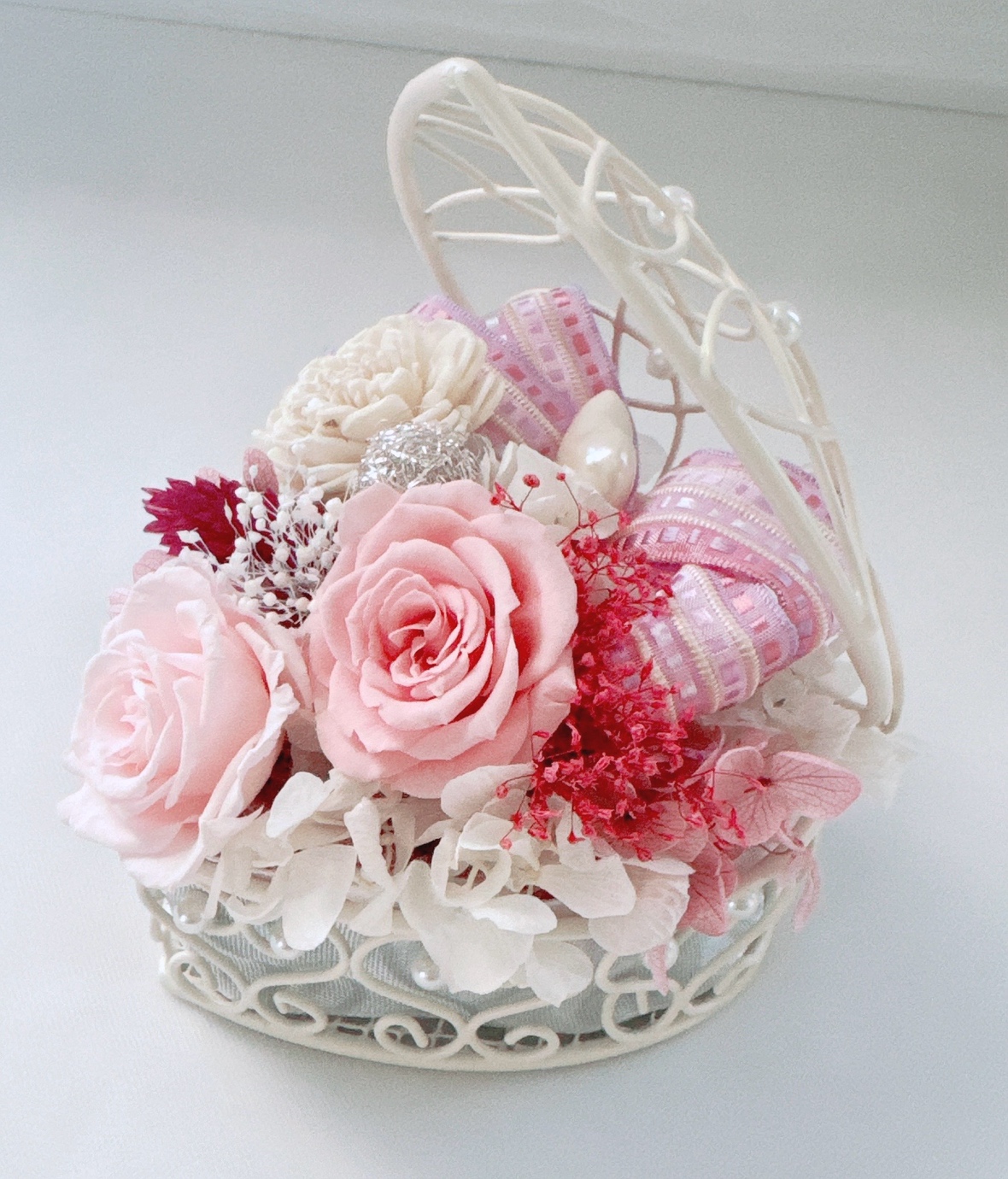 森喜代美先生ブリザーブドアレンジワークショップ「ピンクローズバスケット」