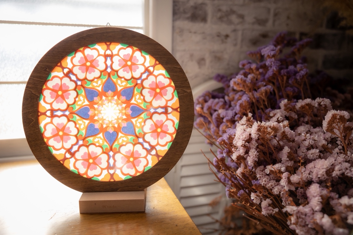 専用の紙で作る、紙のステンドグラスのワークショップです。光を通すと、色合いが重なり、素敵な幾何学図形が生まれます。