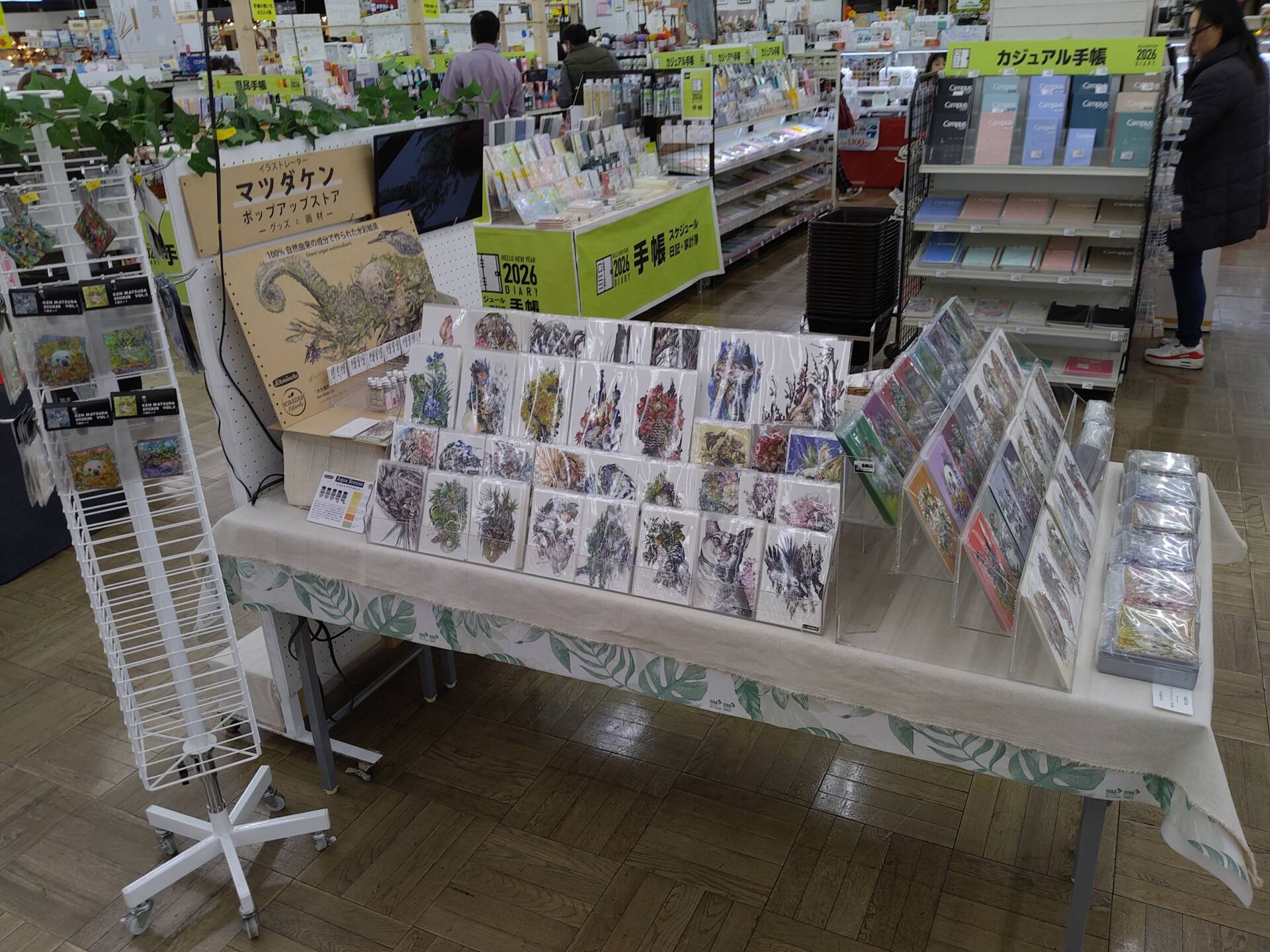 マツダケンさんのイラストが描かれたポストカードやステッカー、ポスターを期間限定で販売しております。