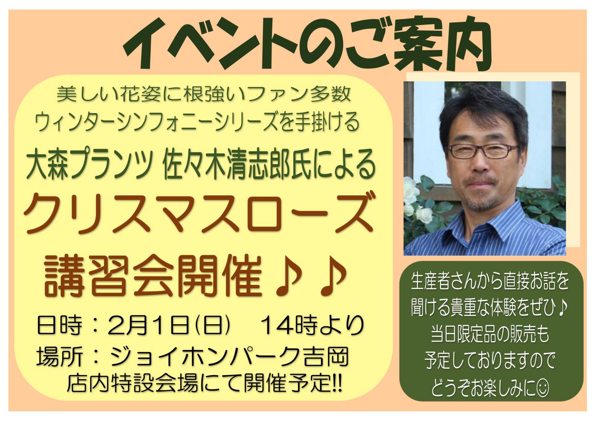 かなり貴重な体験になる事間違いなしのスペシャルな生産者さんによるクリスマスローズの講習会になります。