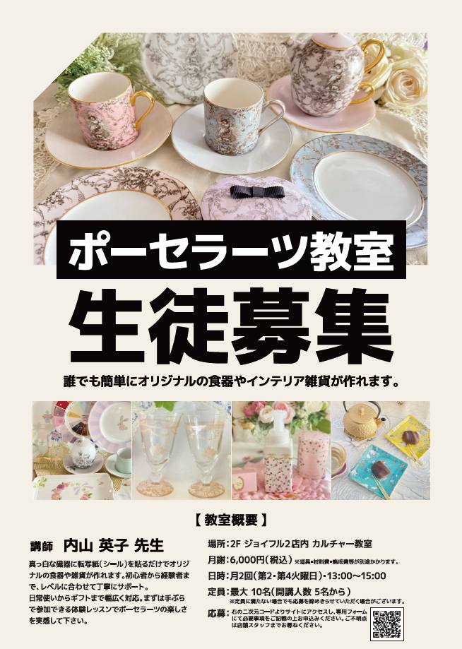 カルチャー教室【ポーセラーツ教室 生徒募集中!】