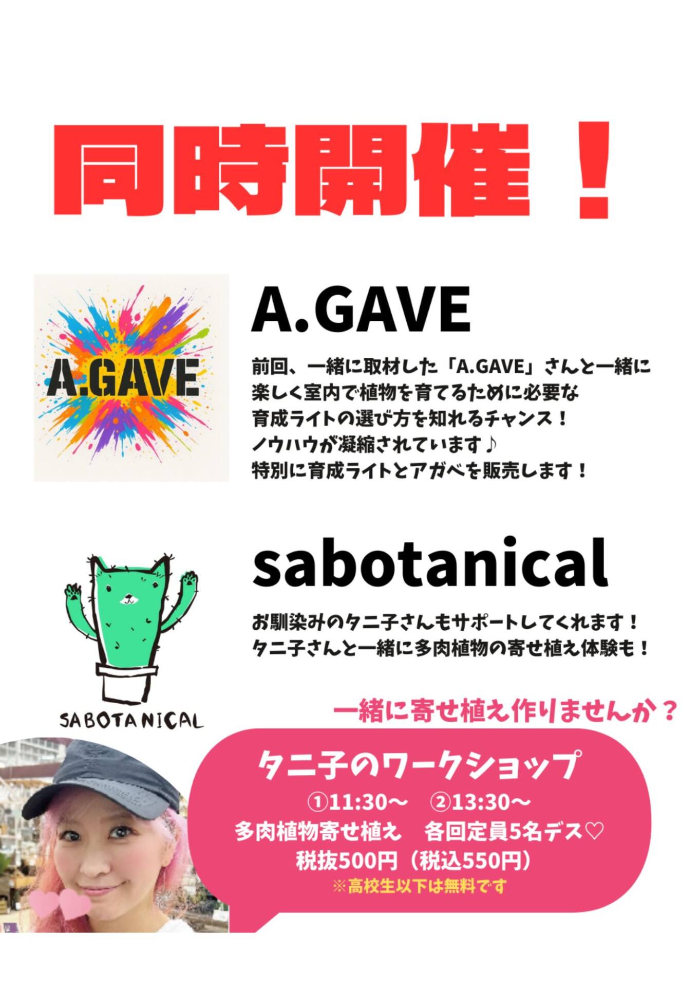 サボテンやアガベ、多肉植物好きの方は勿論、育成ライトに興味のある方必見のイベントです♪