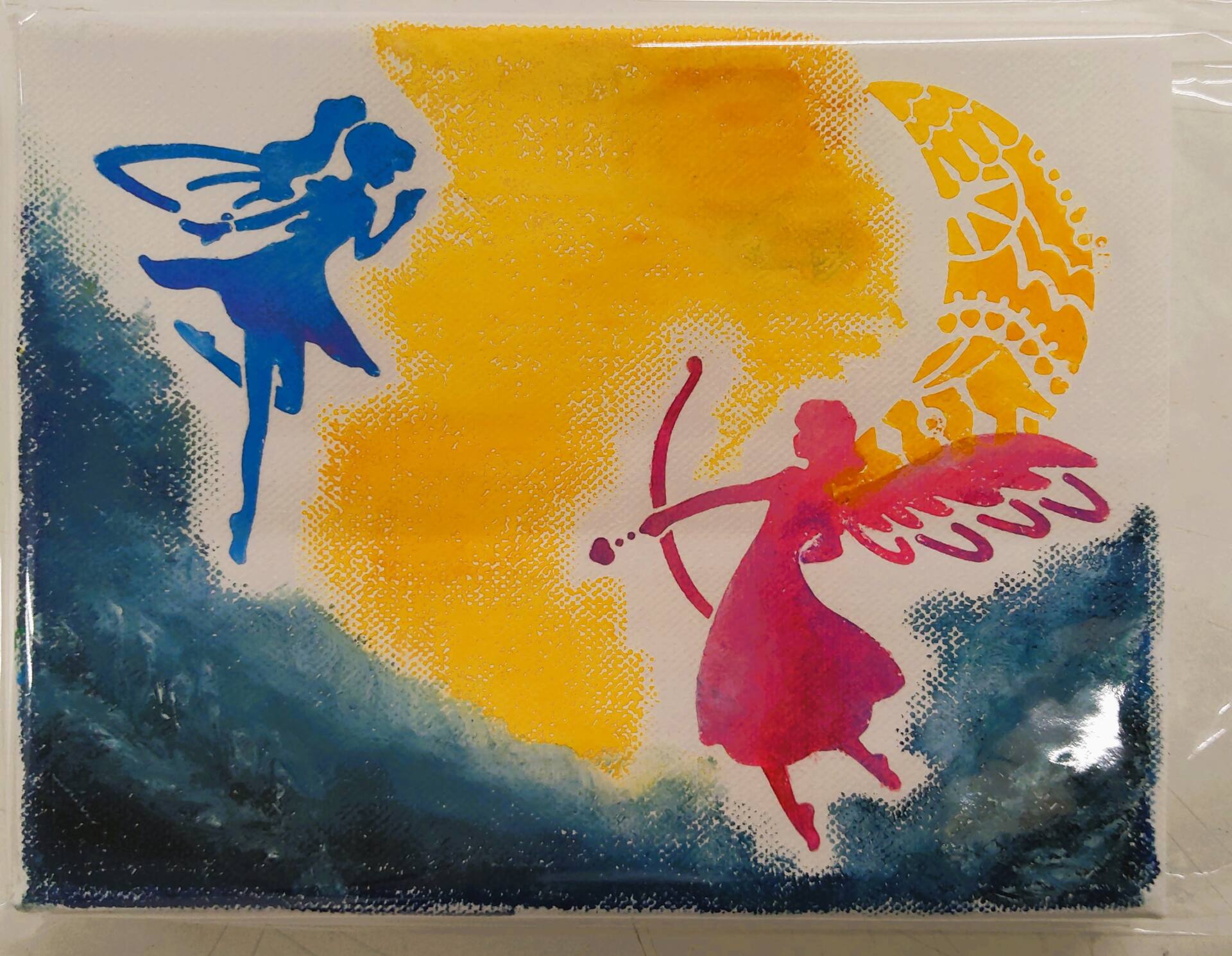 キャンバスにアートクレヨンでグラデーションを楽しみます。ステンシルもありますので初めての方でも簡単に色が塗れます。