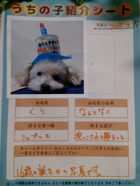チャームポイント・おもしろエピソード、その子との出会いなどを専用の紹介シートに記入してください!